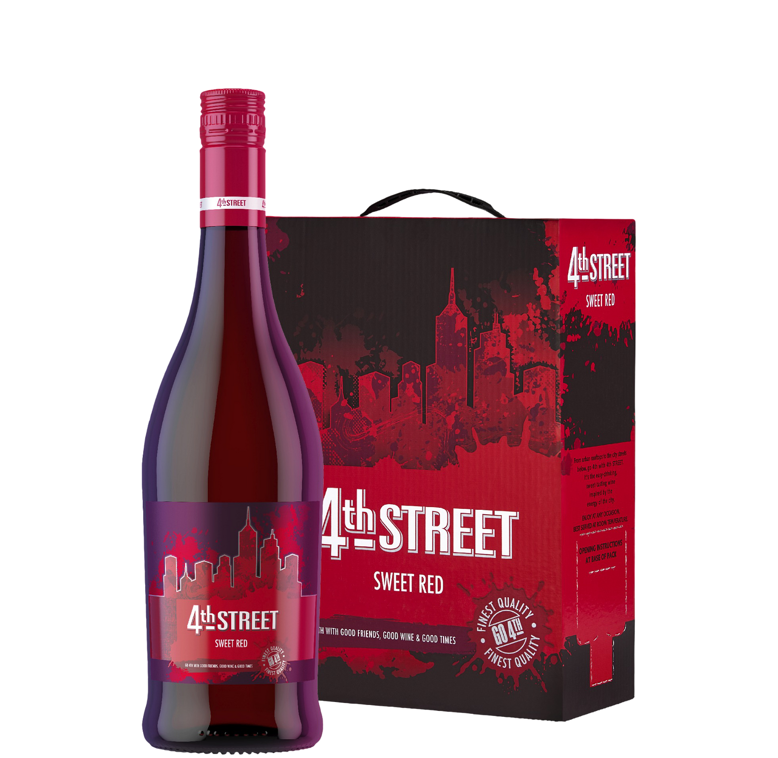 4th Street Red is a sweet, fruity red wine with juicy notes of berries and a smooth, easy-drinking character, perfect for casual occasions.
