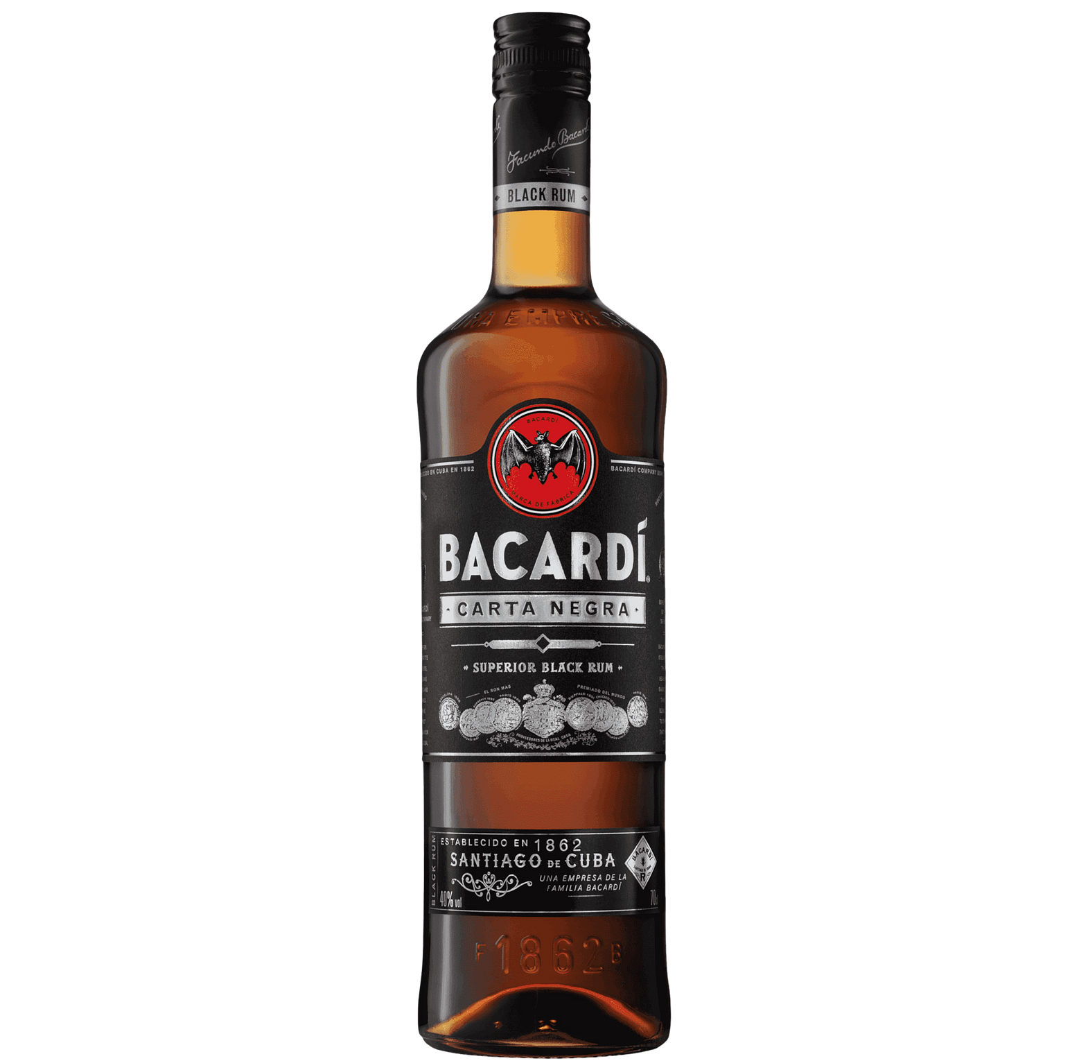 Bacardí Carta Negra is an intense and flavorful dark rum that represents the brand's expertise in extended aging and darker rum production. Aged longer than their standard expressions, this rum develops a rich, full-bodied profile that showcases the deeper, more complex flavors that emerge from extended oak contact and careful maturation. The extended aging process allows the rum to develop greater depth and intensity, creating bold characteristics that make it ideal for cocktails requiring a rum with substantial character and presence. This expression demonstrates Bacardí's ability to produce premium dark rums that compete with the finest Caribbean offerings.