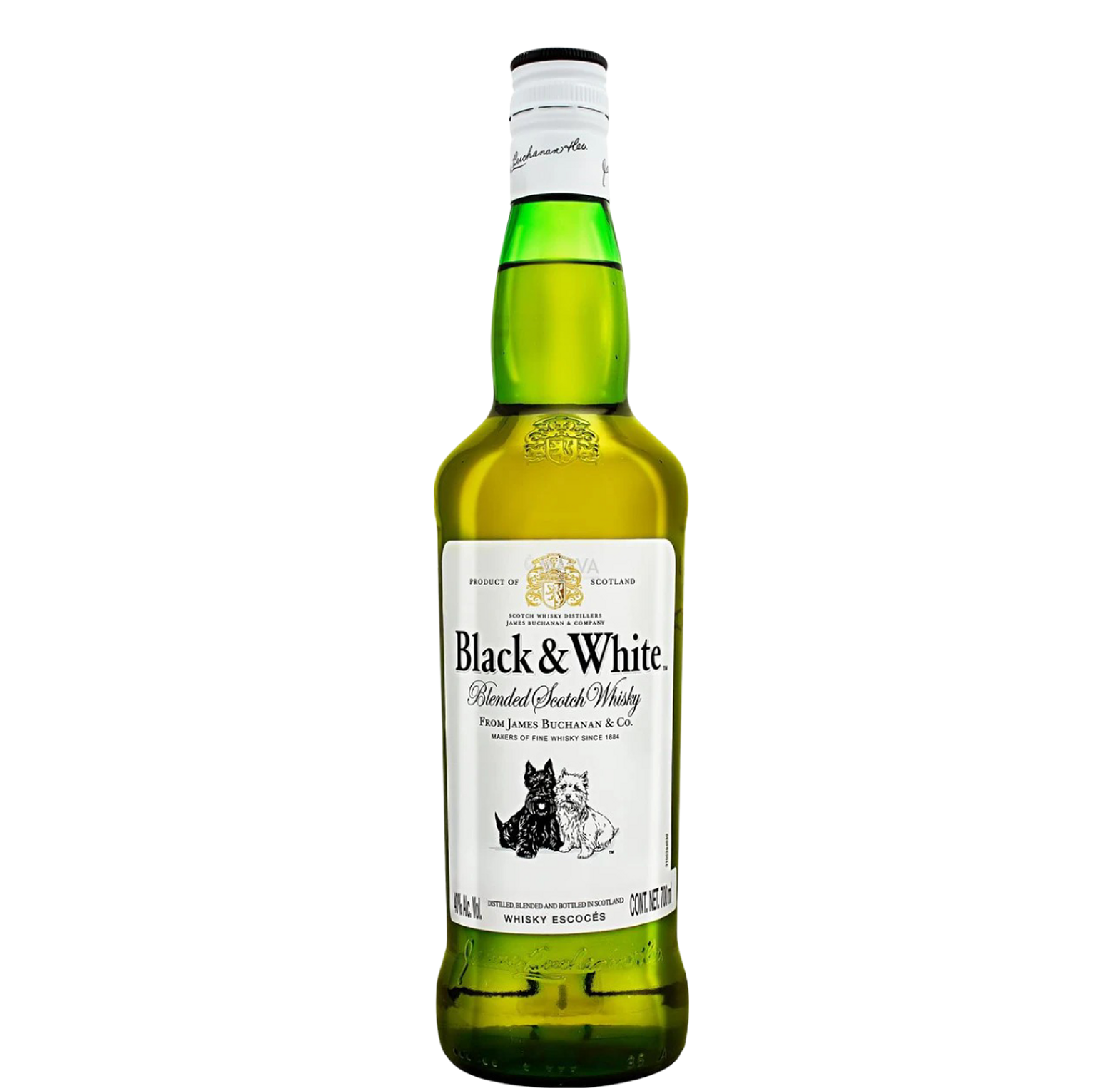 Black & White is a light, smooth, and approachable blended Scotch whisky with soft notes of grain, vanilla, citrus, and a gentle smokiness, making it an easy-drinking choice for any occasion.
