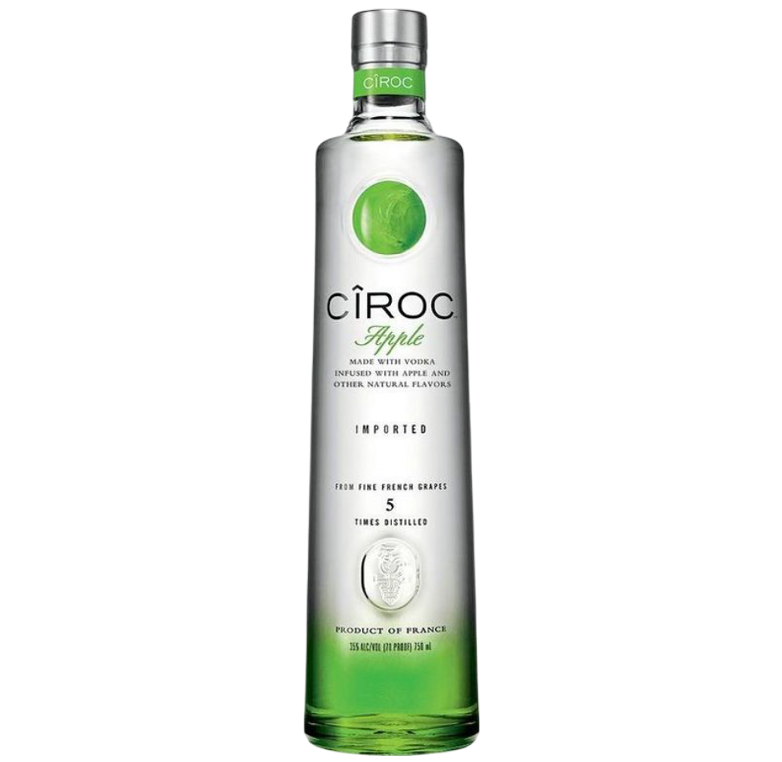 Cîroc Apple combines the brand’s signature French grape-based vodka with the bright, tart essence of green apples. Distilled five times to ensure purity and smoothness, it features natural apple flavors that deliver a crisp, clean, and slightly sweet profile.