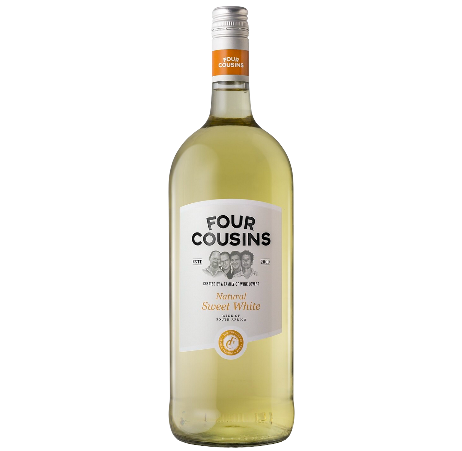 Four Cousins Natural Sweet White is a refreshing, fruity white wine with vibrant notes of tropical fruit and a smooth, sweet finish.