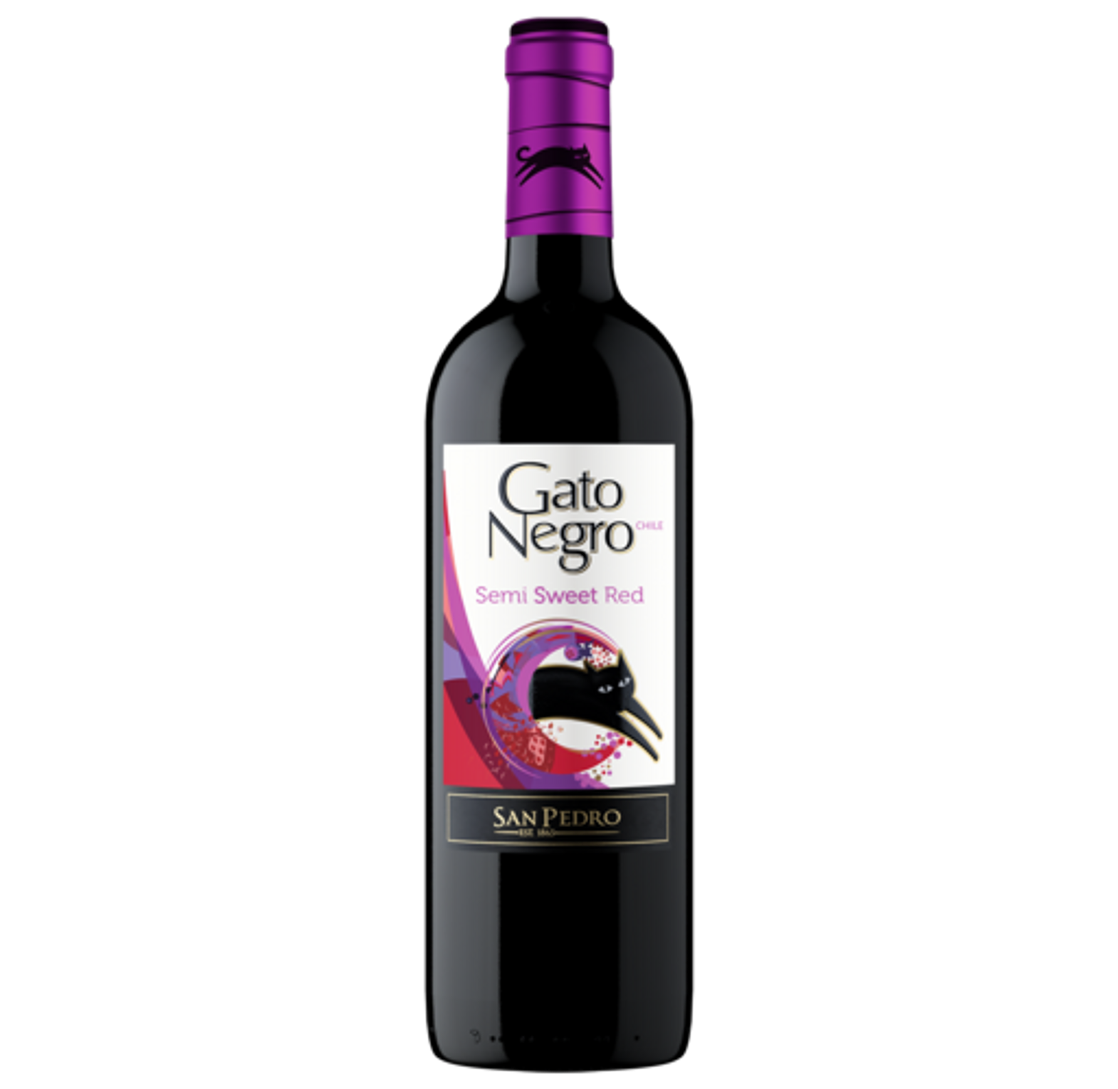 Gato Negro Semi-Sweet Red is a red wine made by Viña San Pedro in Chile, designed for those who enjoy a touch of sweetness balanced with fruit and moderate body. It typically has lower alcohol (~10-10.5 %) and is made for casual consumption rather than long aging, highlighting grape-fruit flavours and soft tannins.