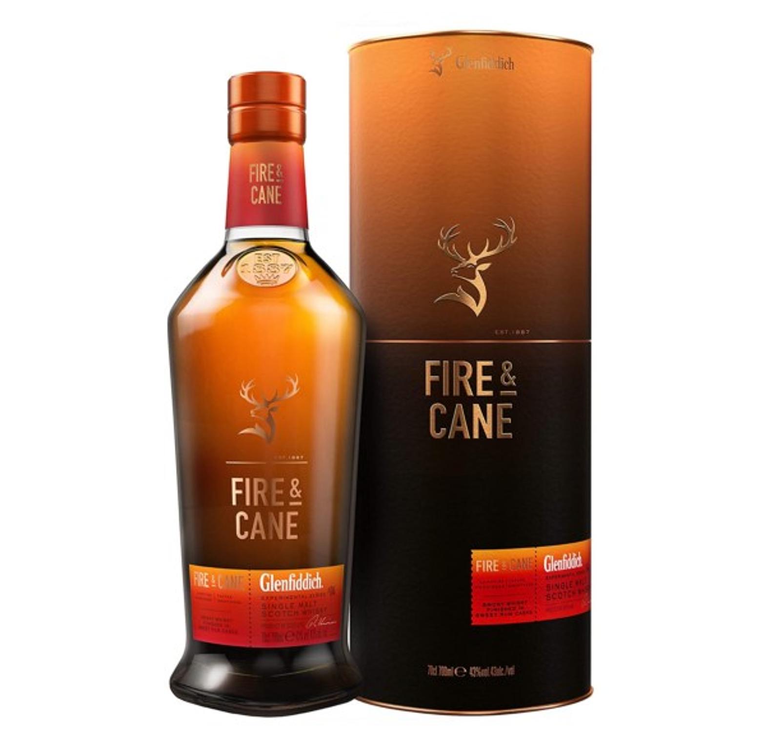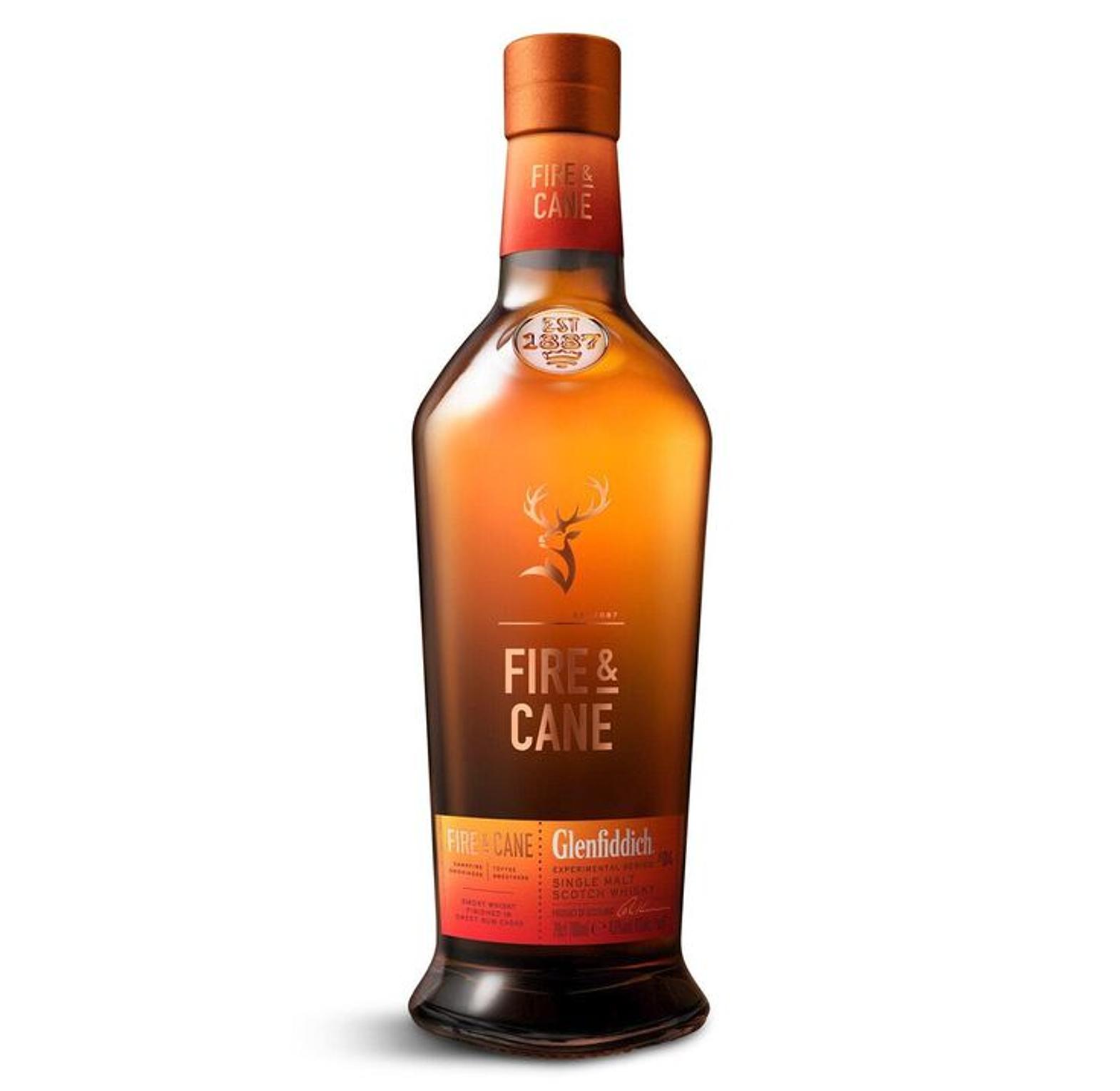 Glenfiddich Fire & Cane is a sweet and smoky experimental single malt, combining peated whisky with a rum cask finish, delivering a mix of toffee sweetness, campfire smoke, and tropical fruit.