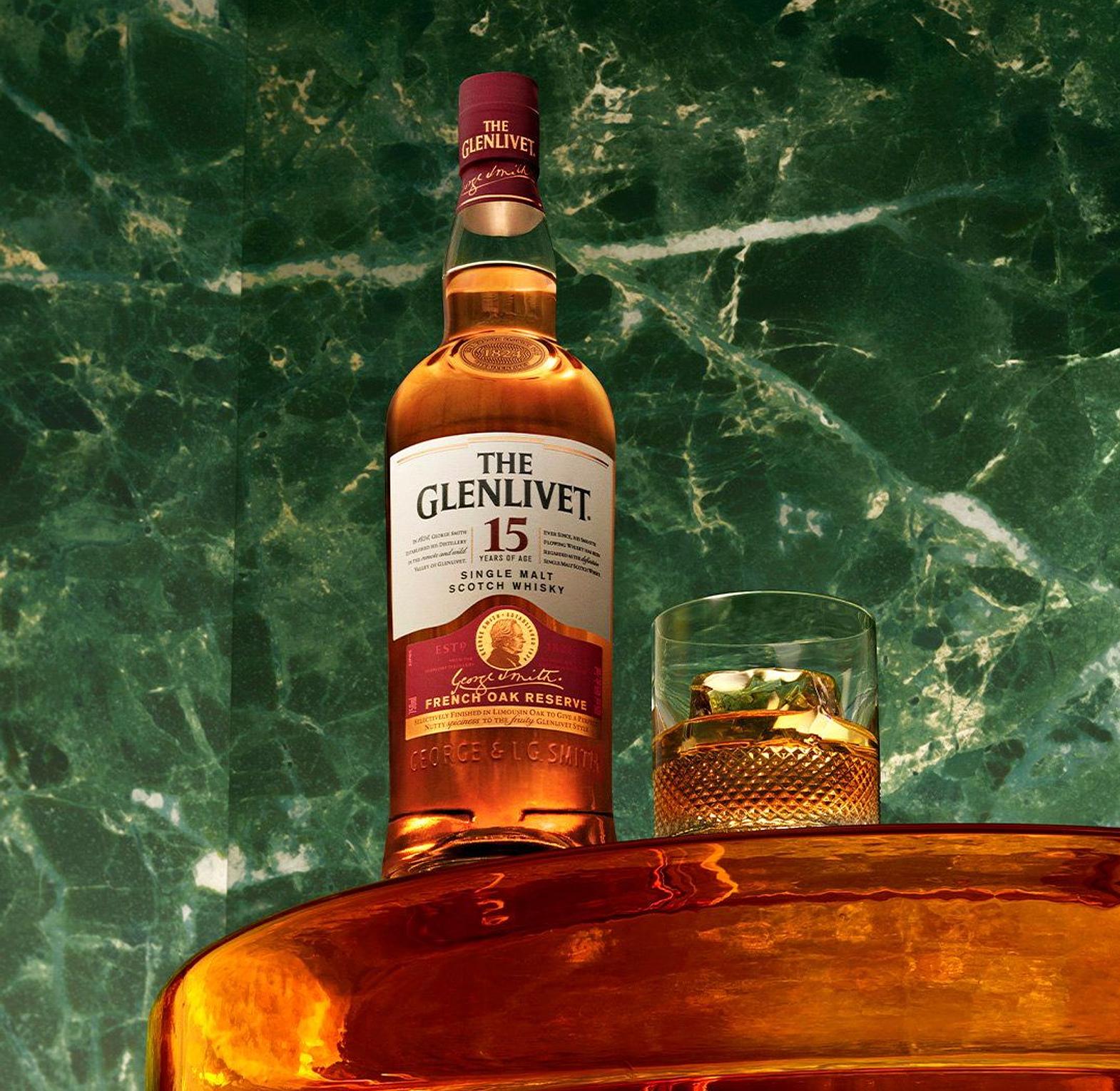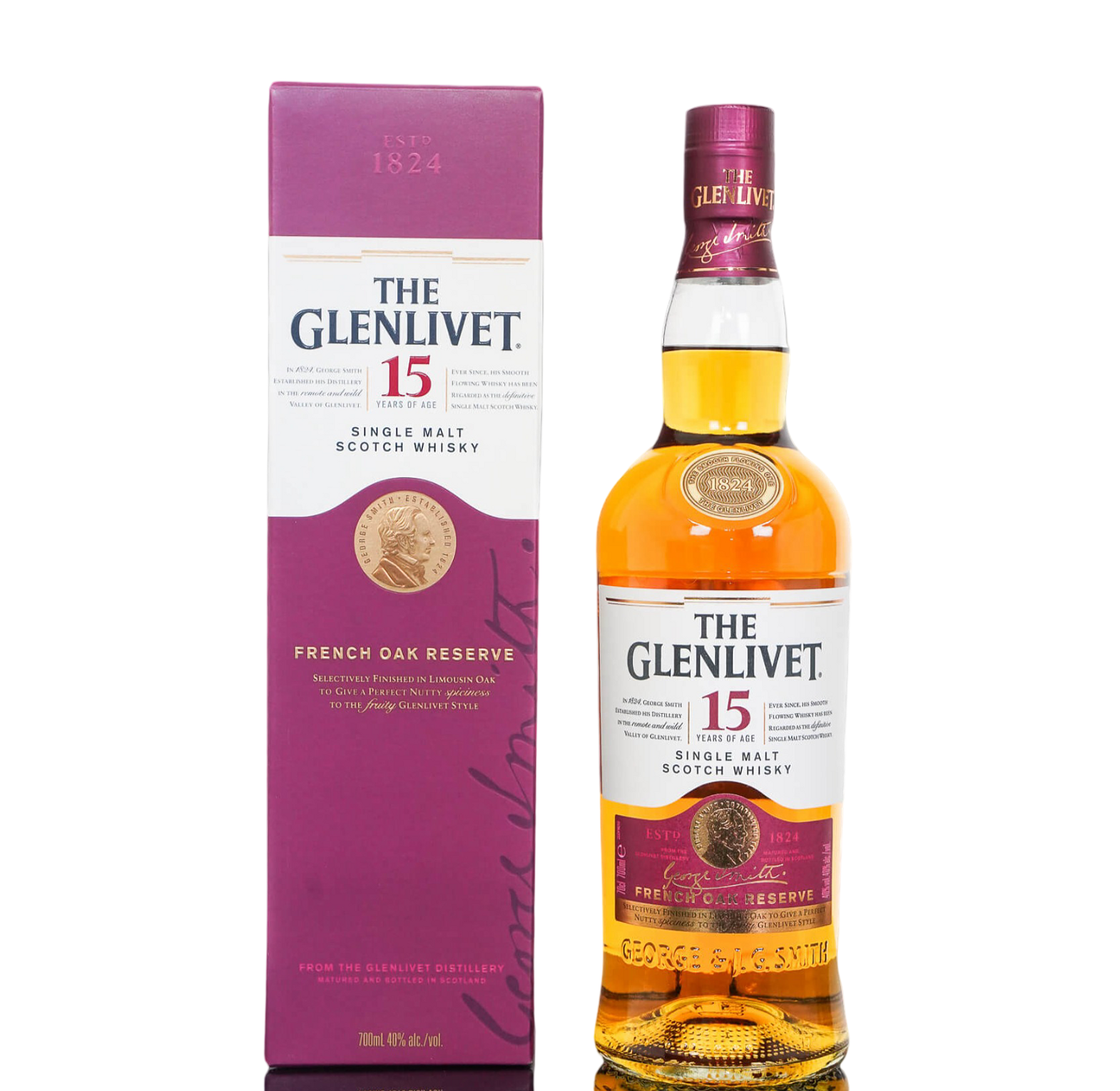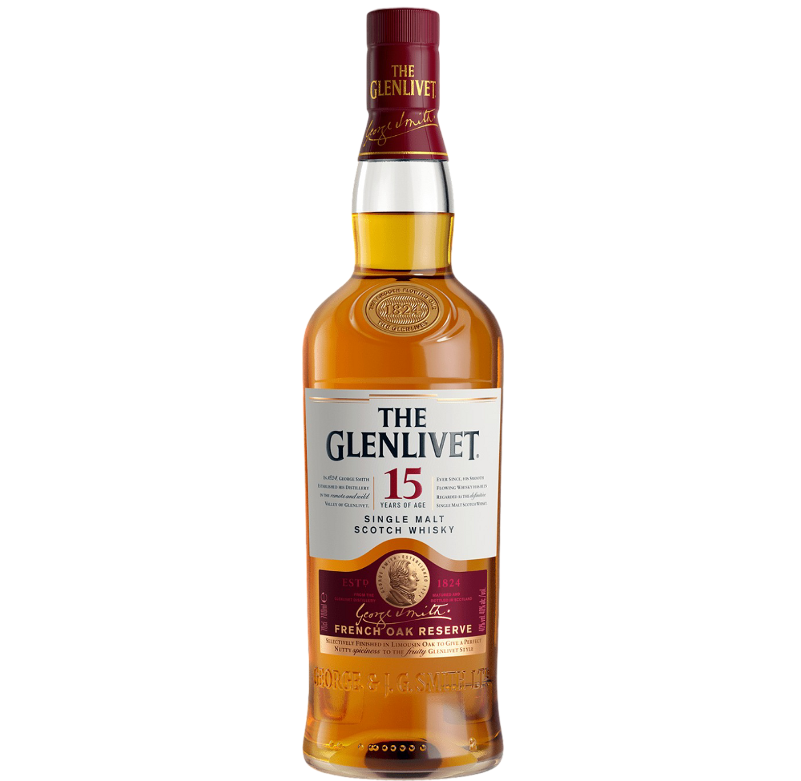 The Glenlivet 15 is a rich, creamy, and slightly spicier Speyside single malt, aged partly in French Limousin oak casks, offering notes of ripe fruit, toffee, almonds, and warm spice.