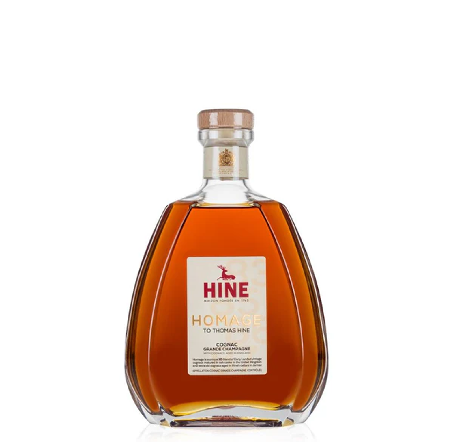 Hine Homage XO is a distinguished Cognac created to honor Thomas Hine, the visionary behind the house of Hine. This exquisite XO blend is composed primarily of Fine Champagne crus (Grande and Petite Champagne), with a portion aged in Jarnac’s cellars and some matured in the United Kingdom to bring unique complexity. Its character reflects both tradition and innovation, offering a sophisticated balance of fruitiness, spice, and elegance.