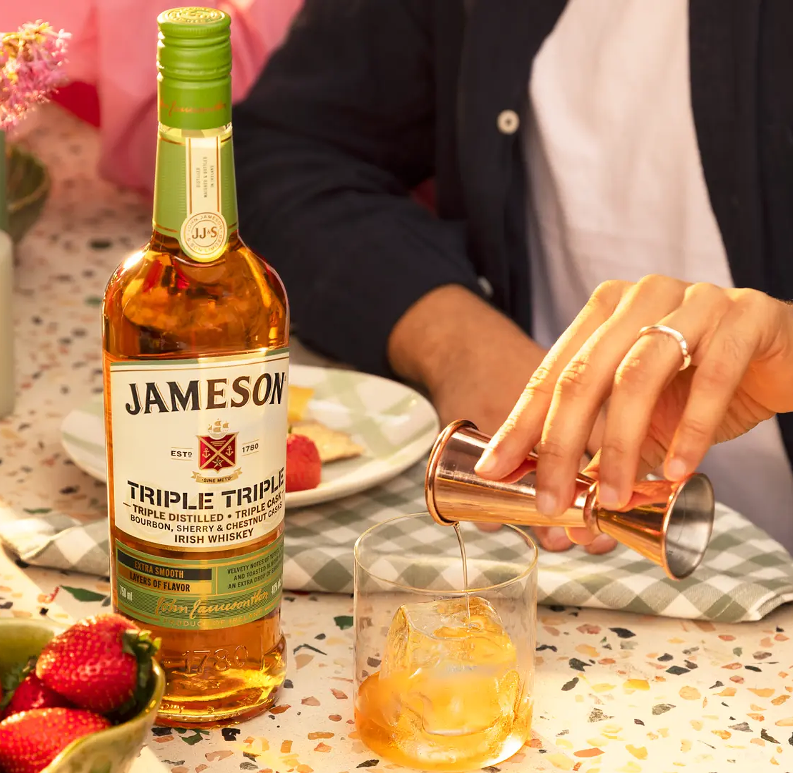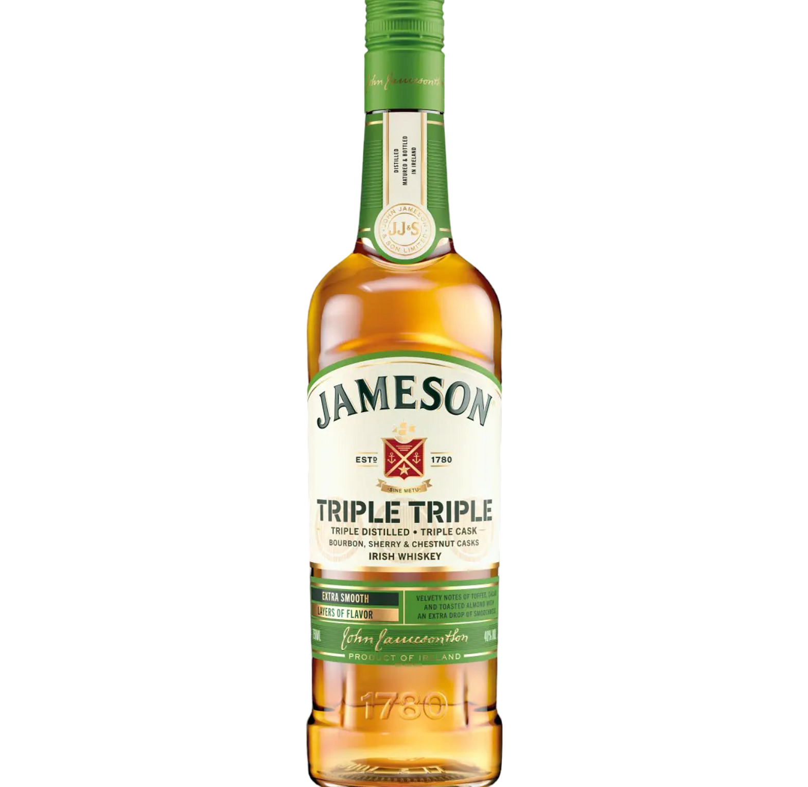 Jameson Triple Triple is a smooth, fruity, and slightly spiced Irish whiskey, matured in three types of casks — bourbon, sherry, and Malaga wine barrels — adding extra layers of citrus, tropical fruit, and soft spice.