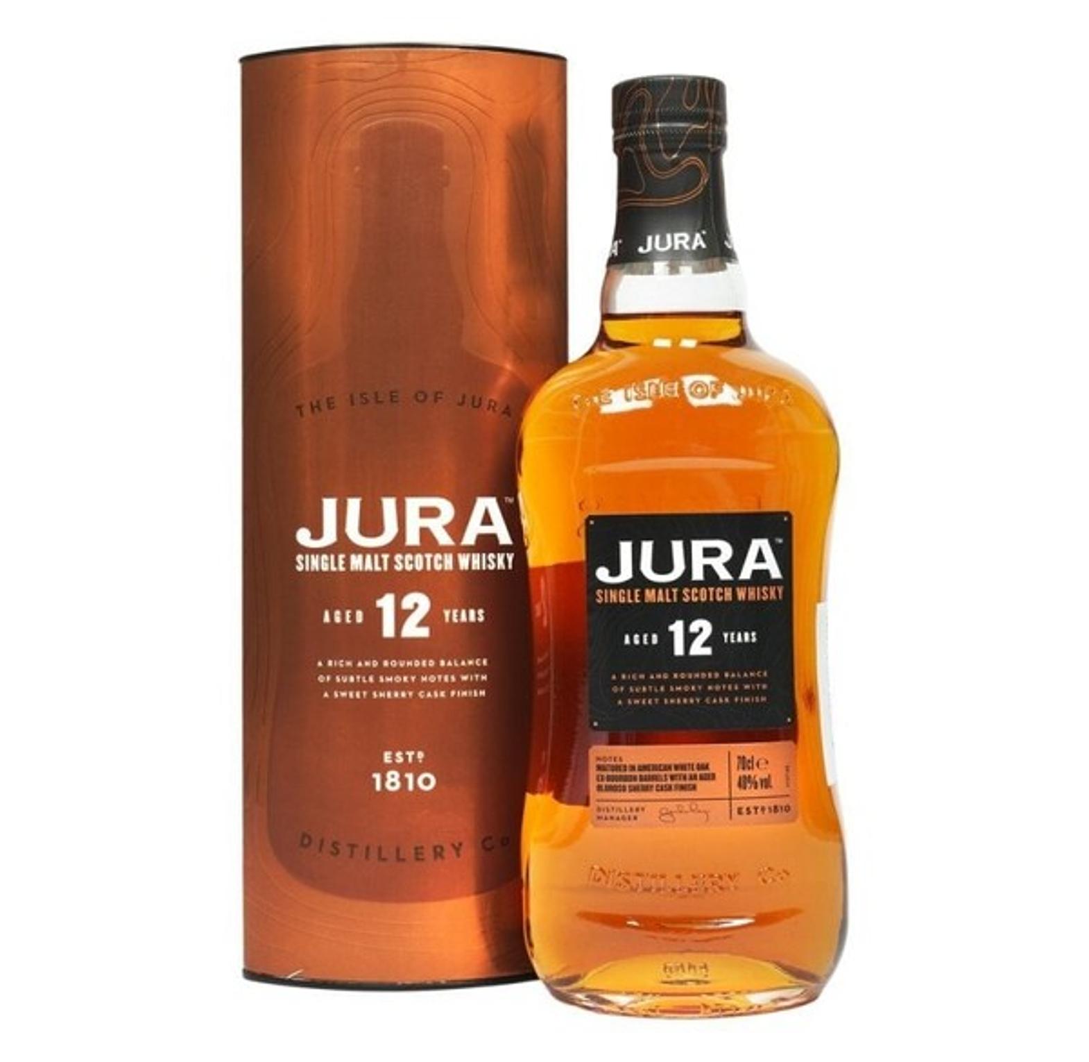 Jura 12 Years Old Single Malt Scotch Whisky is crafted on the Isle of Jura, a remote Scottish island known for its rugged beauty and centuries of whisky-making tradition. This expression is matured in American white oak ex-bourbon barrels and finished in Oloroso sherry casks, resulting in a harmonious balance of rich sweetness and subtle island smoke. It embodies the craftsmanship of Jura’s distillers, offering both depth and approachability for whisky enthusiasts.