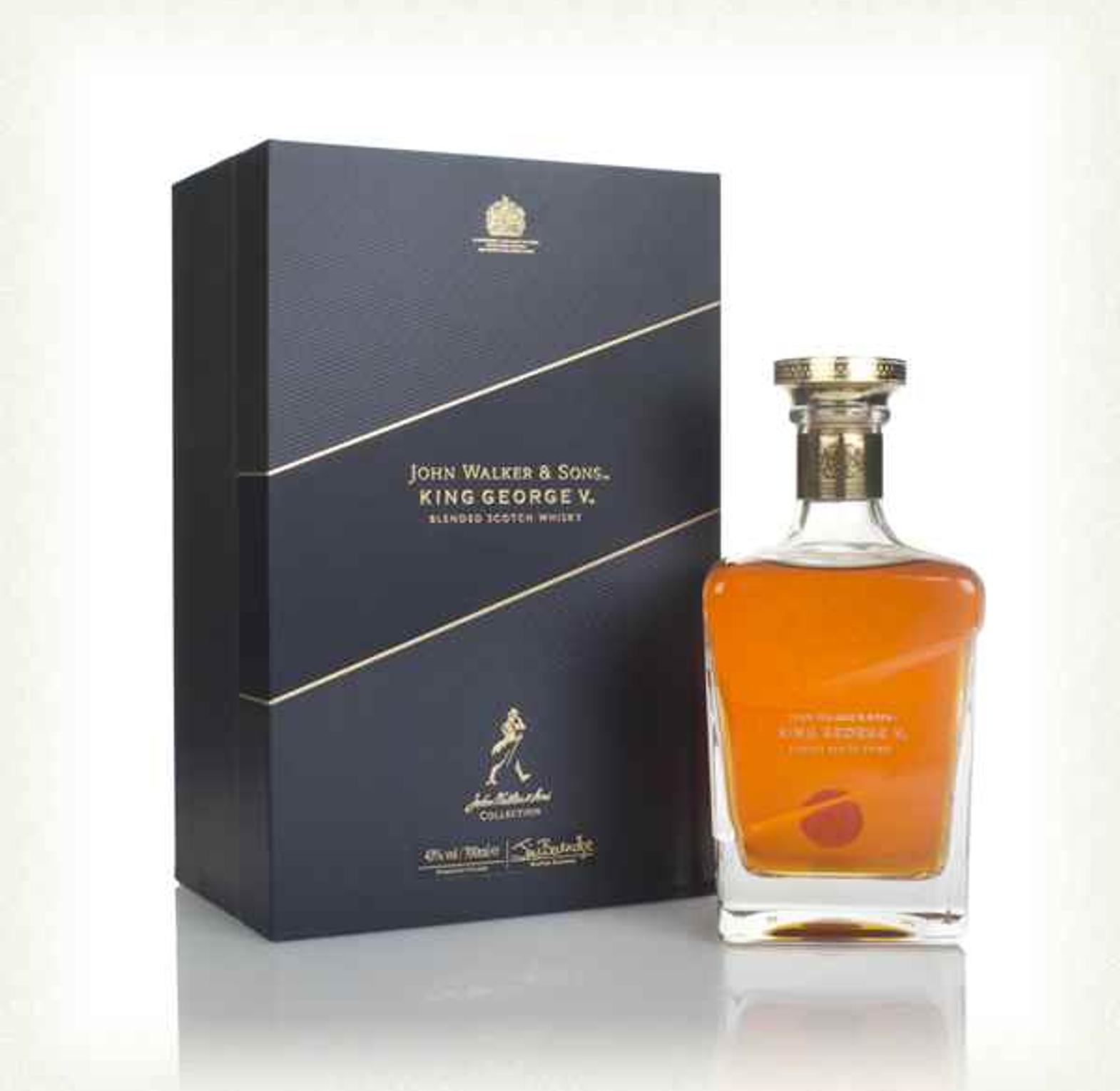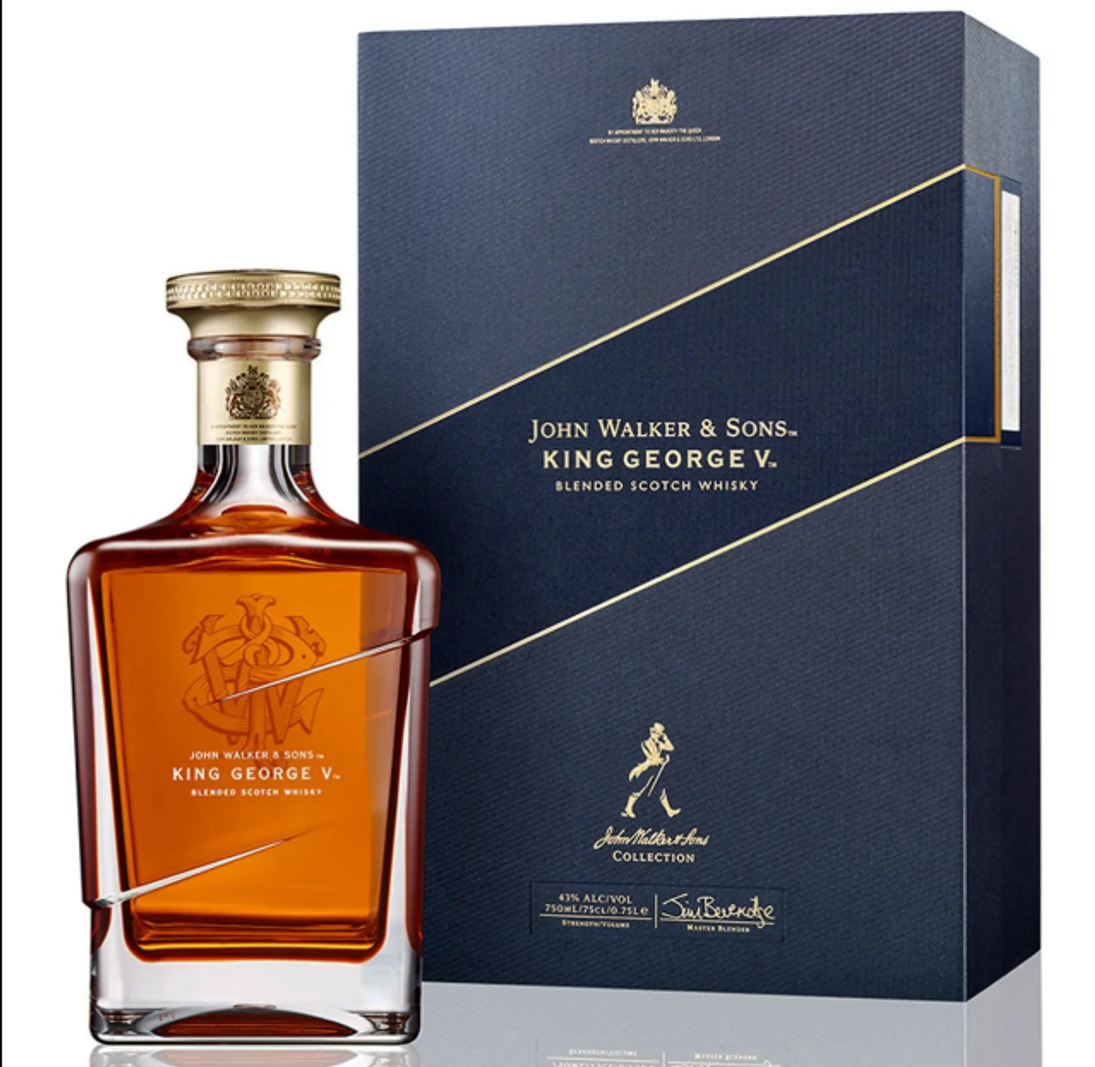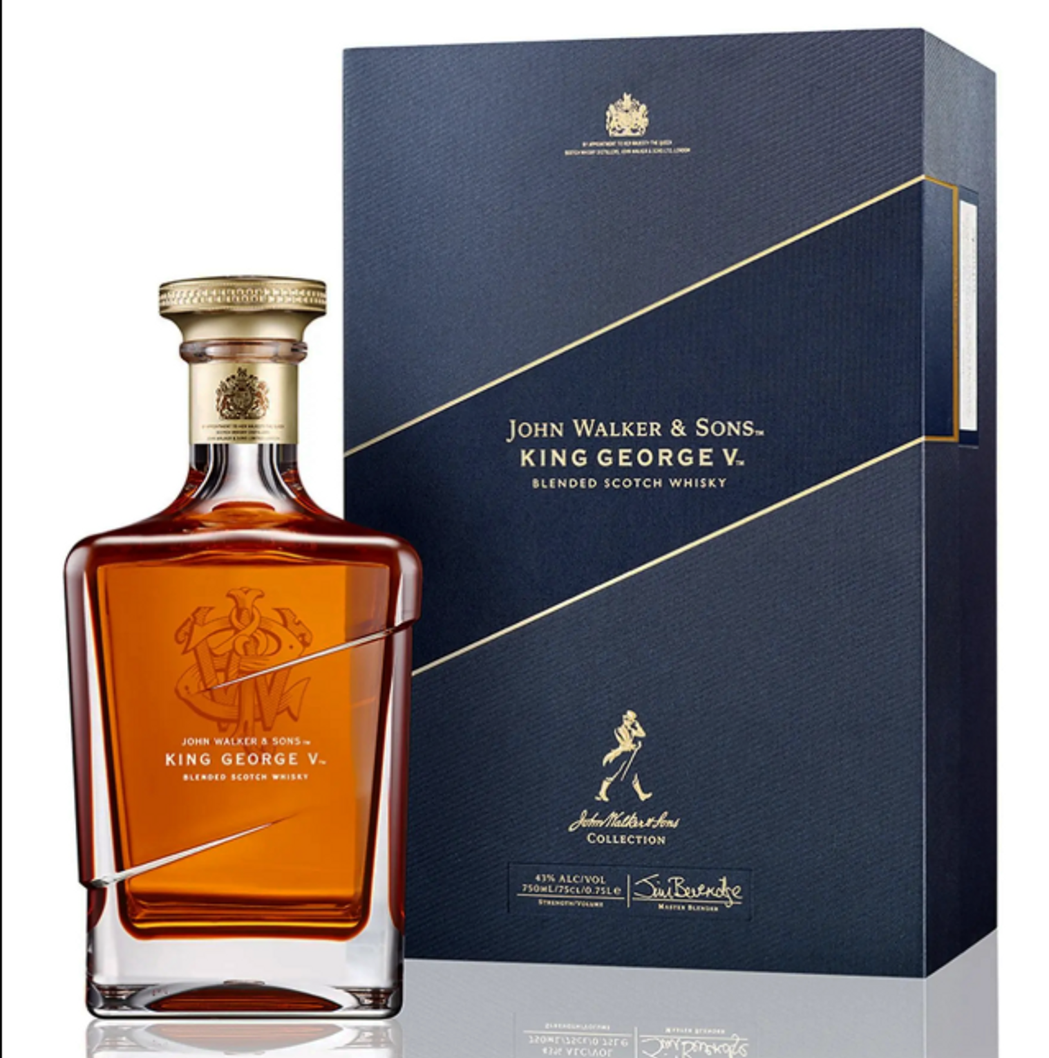 Johnnie Walker King George V is a prestigious blended Scotch whisky created to honor the Royal Warrant bestowed upon Johnnie Walker by King George V in 1934. This exceptional blend incorporates some of the rarest and most esteemed malts, including Port Ellen, a distillery that ceased operations in 1983, adding an unparalleled depth and character to the whisky. The blend also features whiskies from distilleries such as Cardhu and Lochnagar, known for their distinctive profiles. Presented in an elegant decanter-style bottle, King George V epitomizes the pinnacle of Johnnie Walker's craftsmanship and heritage.