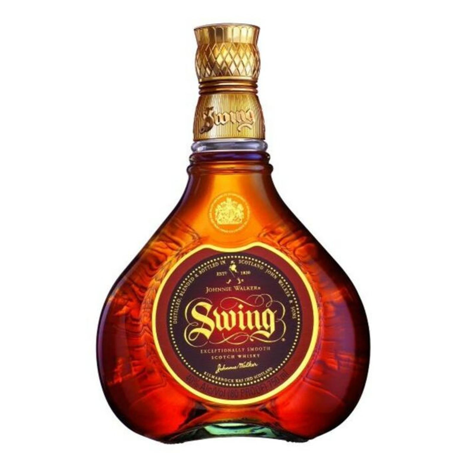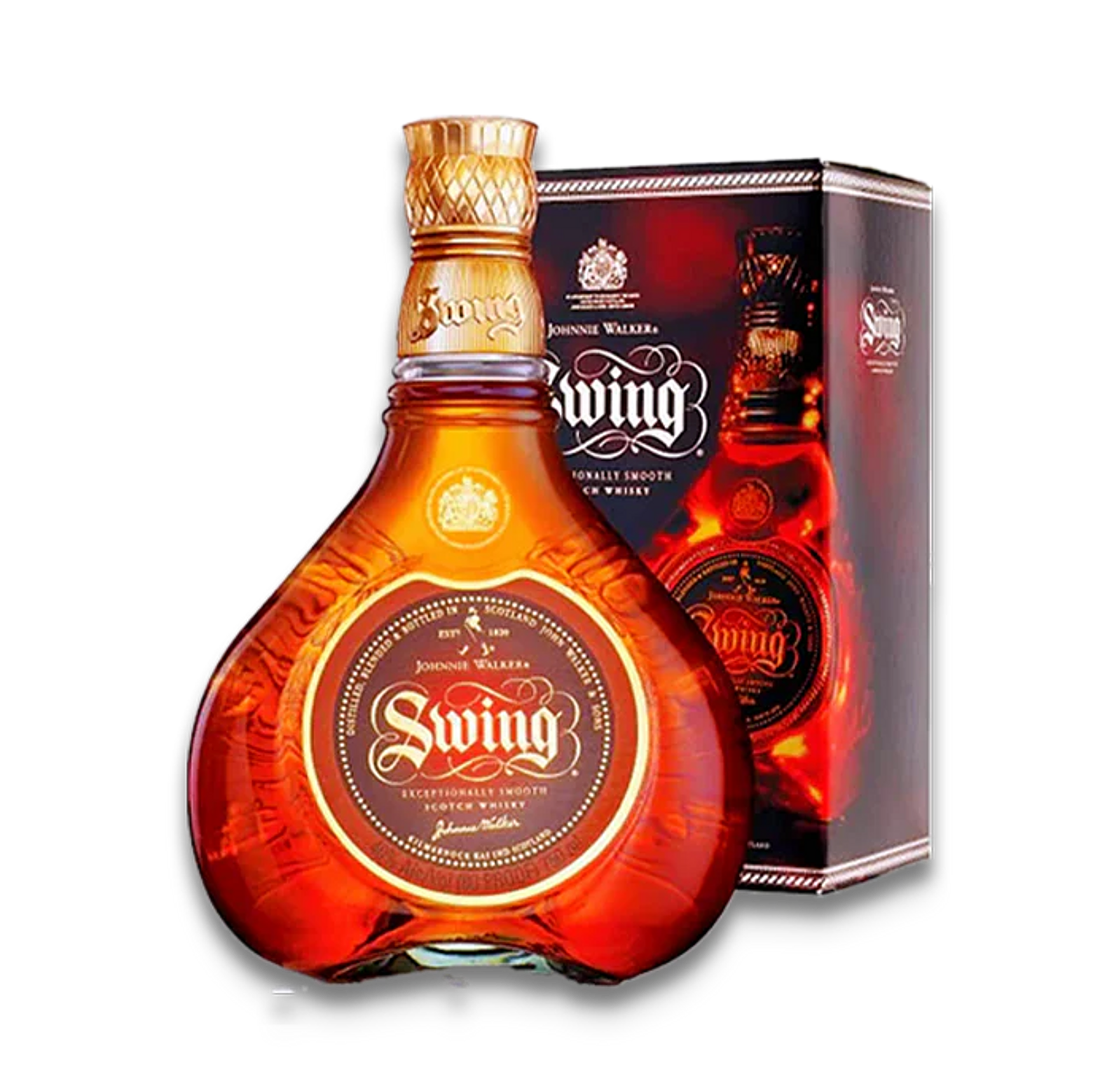 Johnnie Walker Swing is a smooth and rich blended Scotch whisky known for its distinctive bottle that rocks gently (or “swings”) when nudged—designed for ocean travel. It offers a luxurious, complex flavor profile with notes of smoke, spice, and dried fruits.