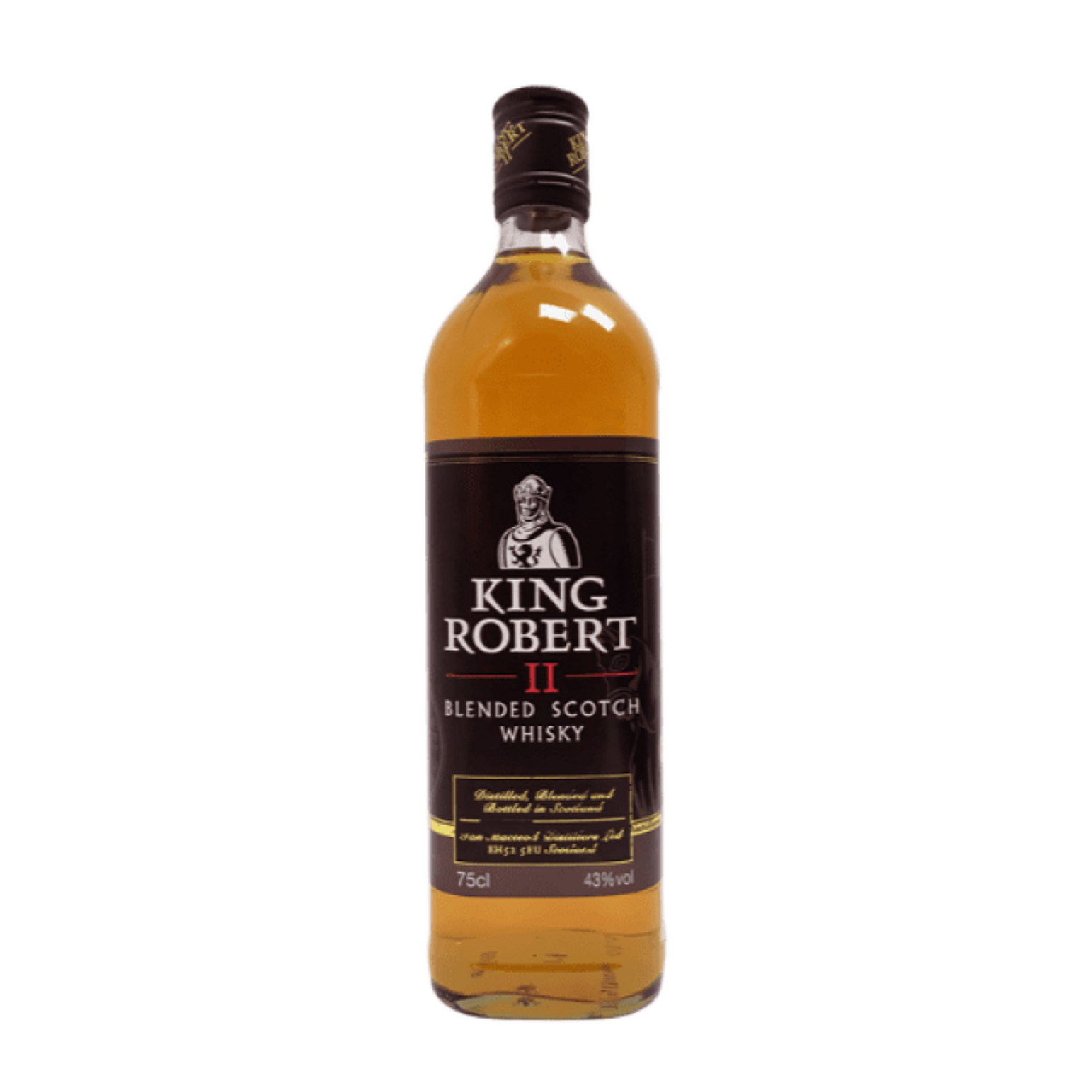 King Robert II Blended Scotch Whisky is a well-regarded expression crafted by Ian Macleod Distillers in Scotland. This whisky is a blend of carefully selected single malt and grain whiskies, aged in oak casks to achieve a harmonious balance of flavors. Known for its smoothness and mellow character, it has garnered recognition for its quality and affordability. Notably, it won a Gold Medal at the 2007 International Wine and Spirits Competition in the Best Blended Scotch Whisky (No Age Statement) category.