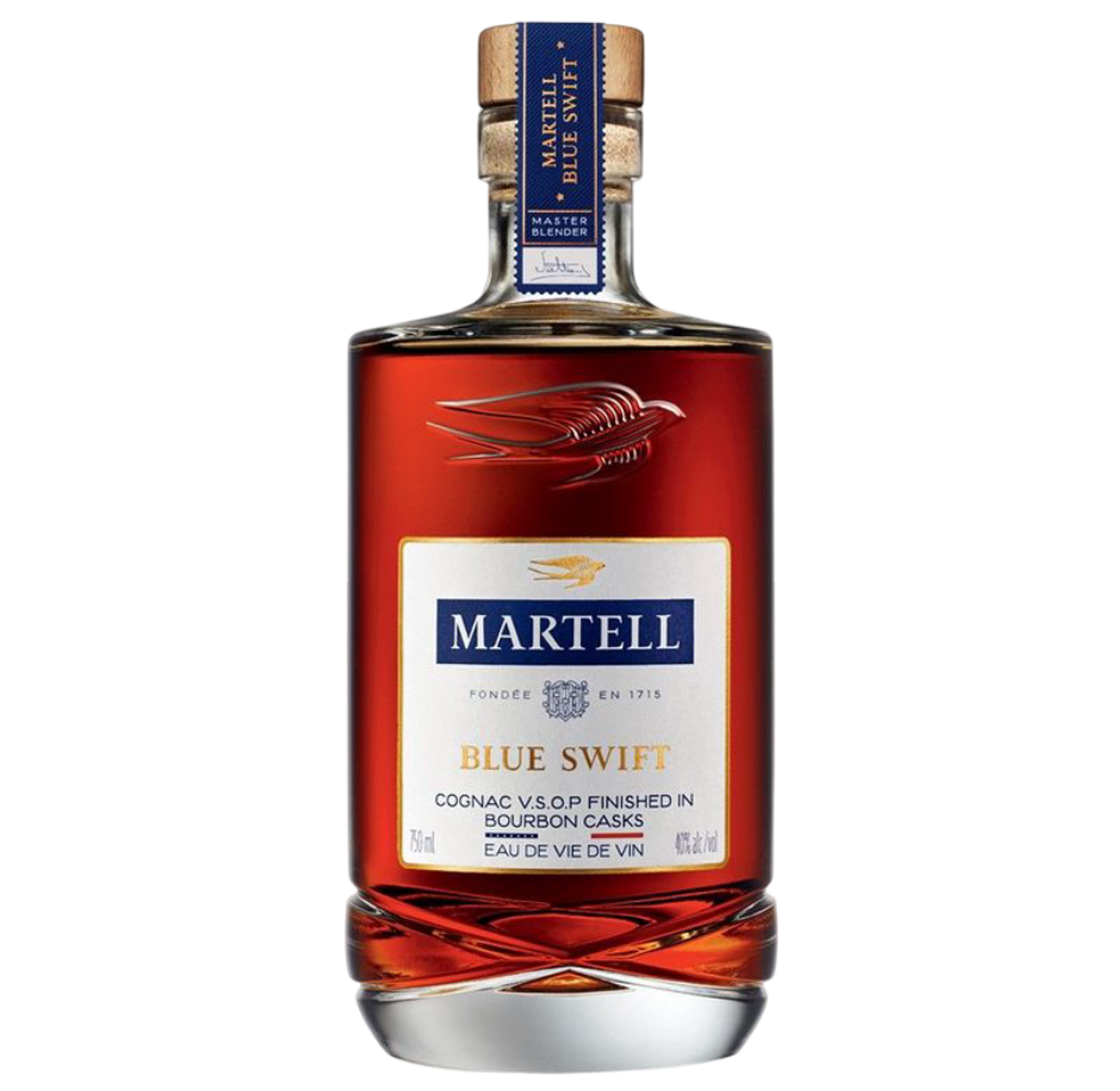 Martell Blue Swift is a VSOP cognac finished in bourbon barrels, delivering a smooth blend of French elegance with bold American oak and vanilla notes.