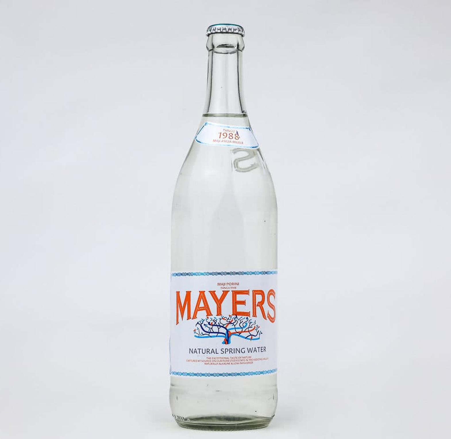 Mayers Water is a Kenyan natural spring water brand, sourced from pristine springs in Kenya. It is available in both still (non-carbonated) and sparkling forms, with various bottle formats (glass, PET) and sizes (from small individual bottles up to large multi-litre jugs). Its production includes filtering and minimal processing to retain natural minerals, resulting in a crisp, clean taste. Positioned as a reliable everyday hydration option, it’s also used for mixing with drinks, in food service, or for on-the-go refreshment.
