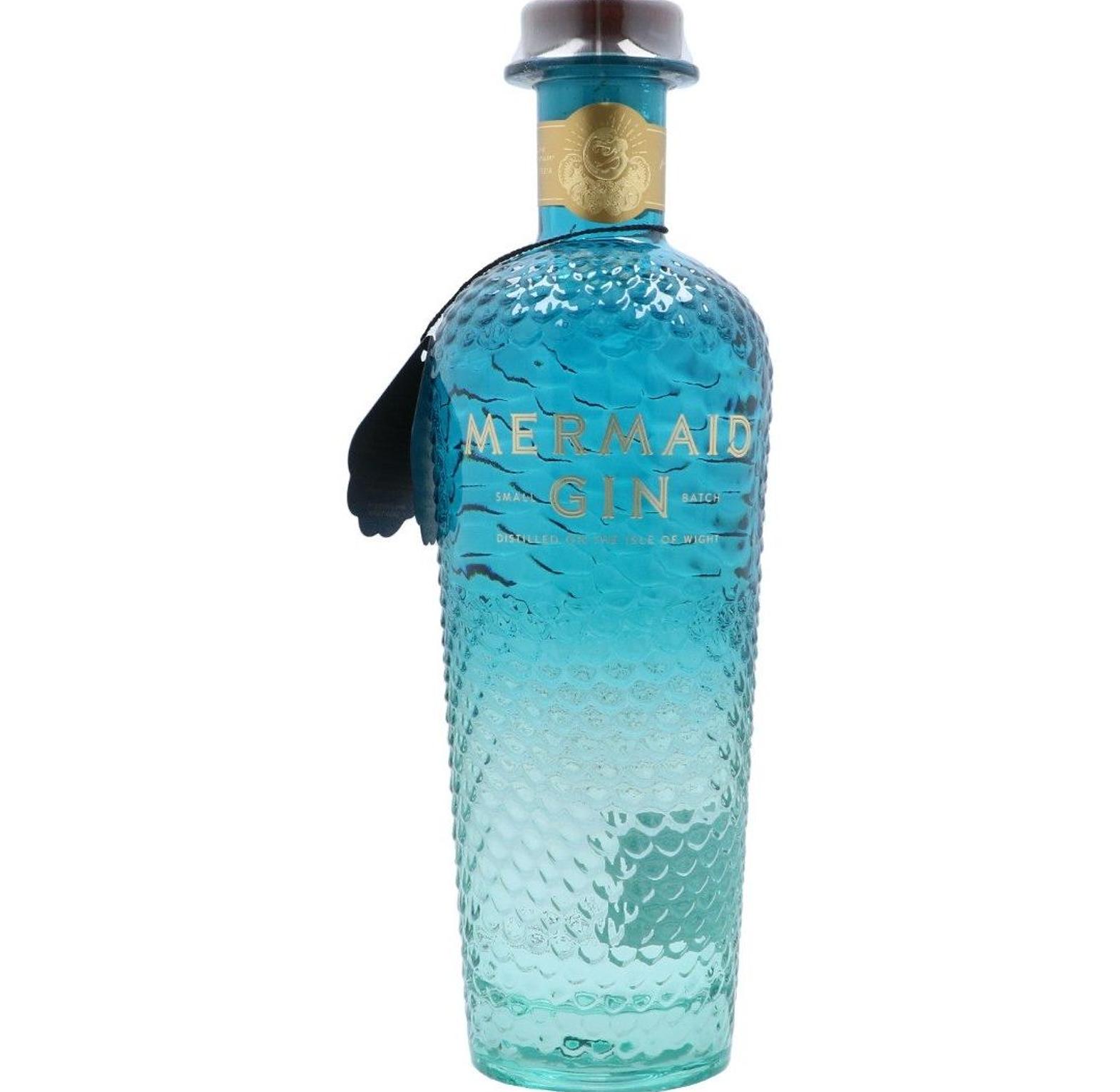 Mermaid Blue (often simply “Mermaid Gin”) is a London-Dry gin from the Isle of Wight, England. It’s made using ten ethically-sourced botanicals including rock samphire (foraged on the coast), juniper, citrus peels (like lemon zest), elderflower and grains of paradise. The distillation uses traditional methods plus a multi-reflux column still, and the gin is distilled clear; its iconic blue bottle nods to its maritime inspiration. With an ABV of 42%, it balances freshness, herbaceousness and a salty edge.