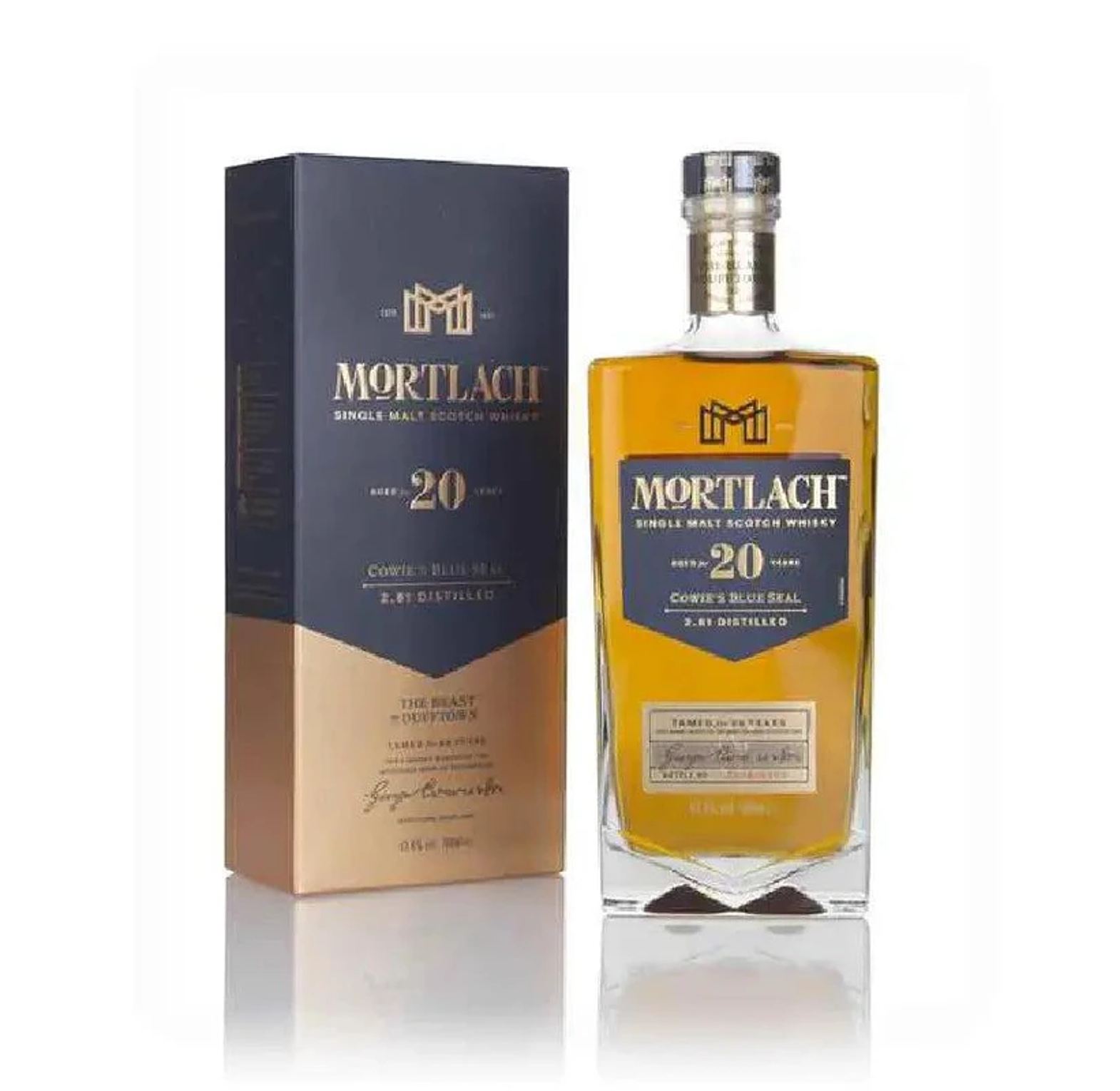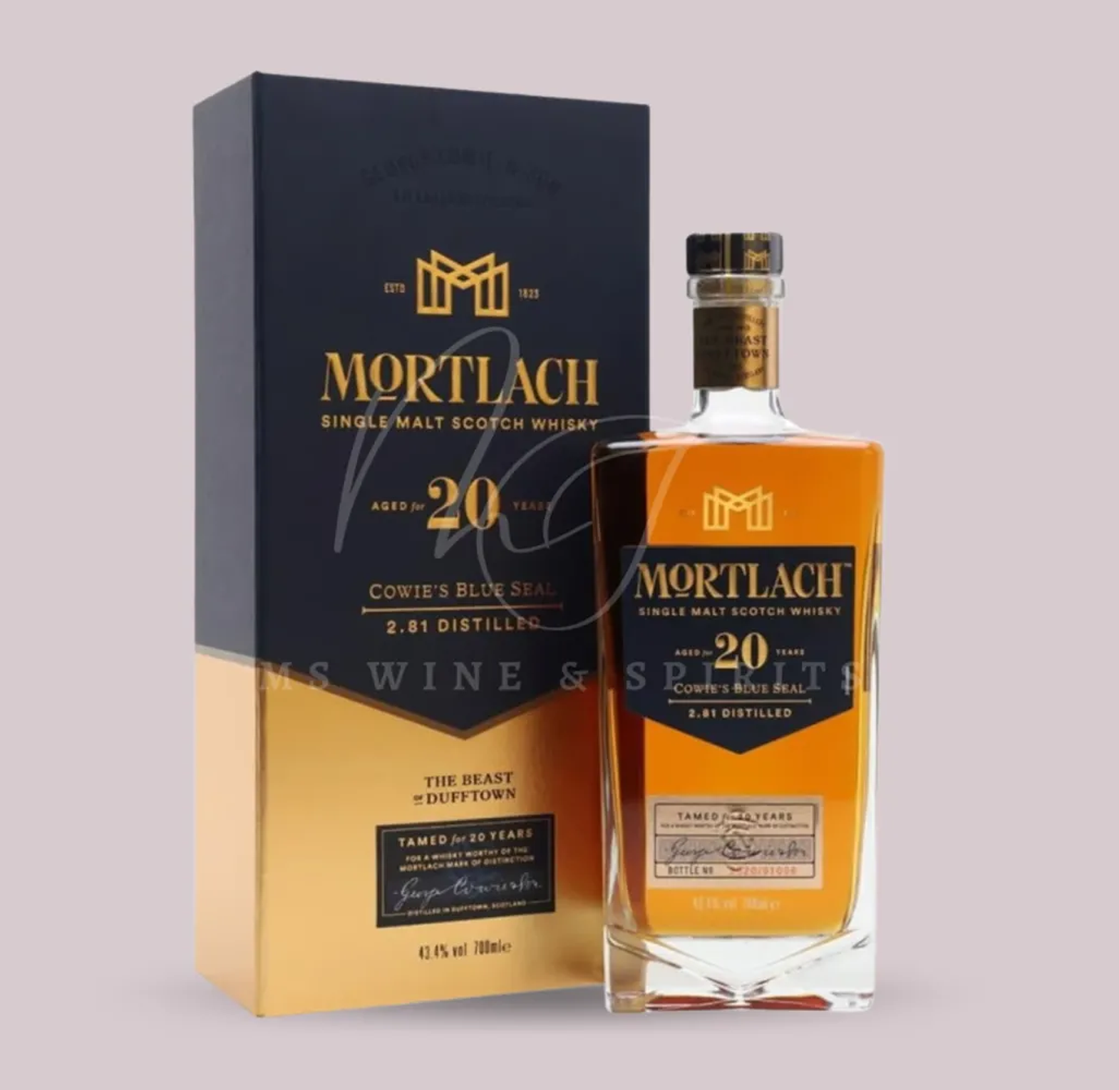 Mortlach 20 Years Old “Cowie’s Blue Seal” is a premium single malt Scotch whisky from Mortlach in Dufftown, Speyside. Matured for 20 years exclusively in sherry-seasoned casks, it showcases Mortlach’s signature richness—meaty, full-bodied, with complex layers born of patient ageing. Bottled at 43.4% ABV, it represents the oldest expression in Mortlach’s core range (as of its release), aimed at connoisseurs who value depth, oak integration, fruit complexity, and mature spice in their dram.