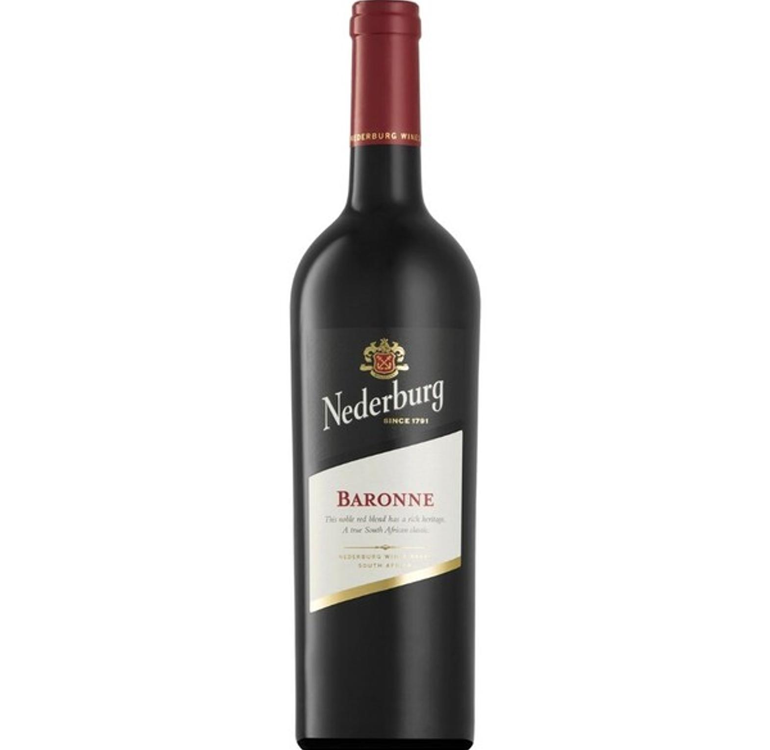 Nederburg Baronne (750ml) is a smooth, full-flavored red blend combining ripe berry notes with subtle oak spice, crafted for everyday elegance and reliable enjoyment.