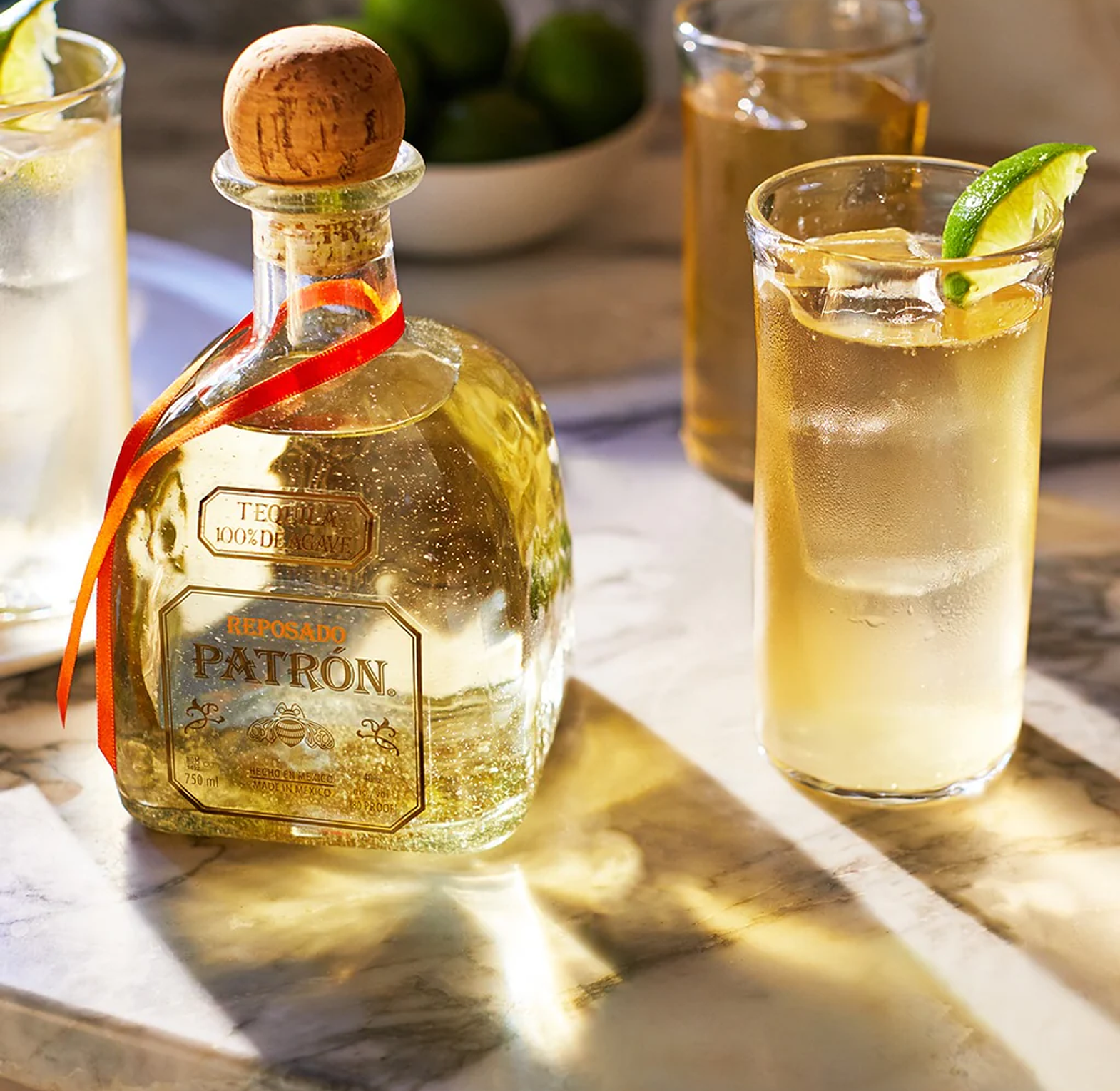 Patrón Reposado Tequila is crafted from 100% Weber Blue Agave, harvested in the highlands of Jalisco, Mexico. This tequila is aged for over four months in American, French, and Hungarian oak barrels, resulting in a light amber hue and a smooth, complex flavour profile. The meticulous ageing process imparts rich characteristics of the wood, enhancing the natural agave flavours.​