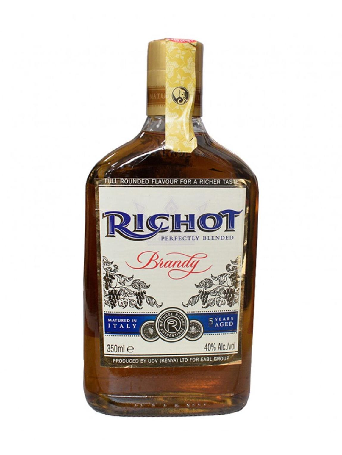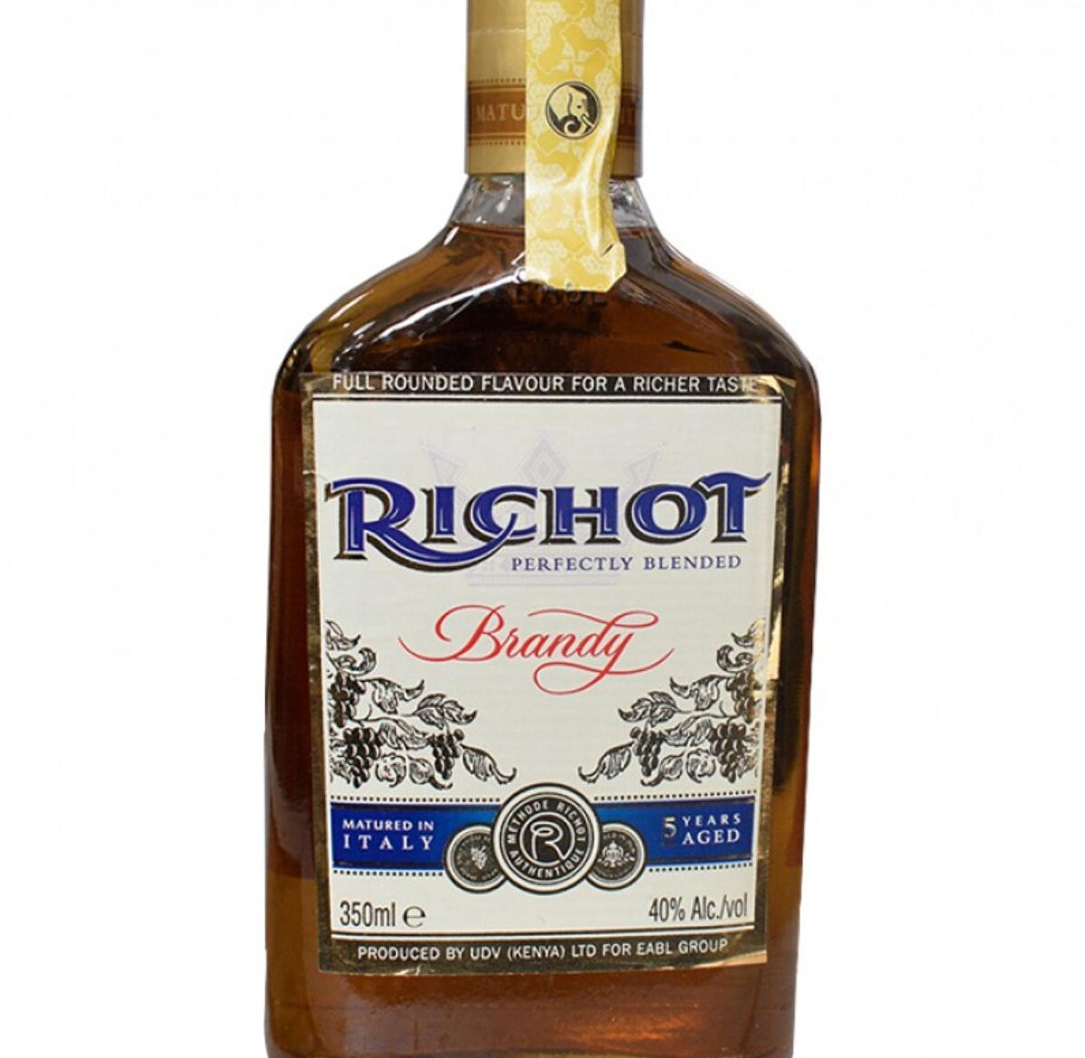 Richot Brandy is a premium grape brandy, with Italian roots, that has become well-established in the Kenyan spirits market. It is aged for at least five years in oak casks (single oak barrels in Italy under Bonollo Distillery tradition), giving it deeper character and complexity. It’s a blend of quality grape brandy (and according to some local listings, grape and cane origin in some markets) designed to be flavourful yet smooth. Bottled at 40% ABV, Richot is aimed at consumers who appreciate matured brandy without the high cost of top-shelf imports.