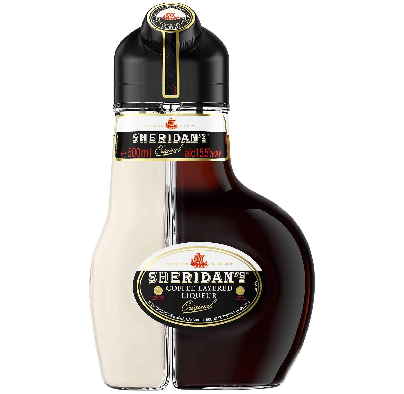 Sheridan’s Coffee is a dual-layered Irish liqueur combining rich coffee and whiskey flavors with smooth vanilla cream, beautifully presented in a split bottle for a striking layered pour.