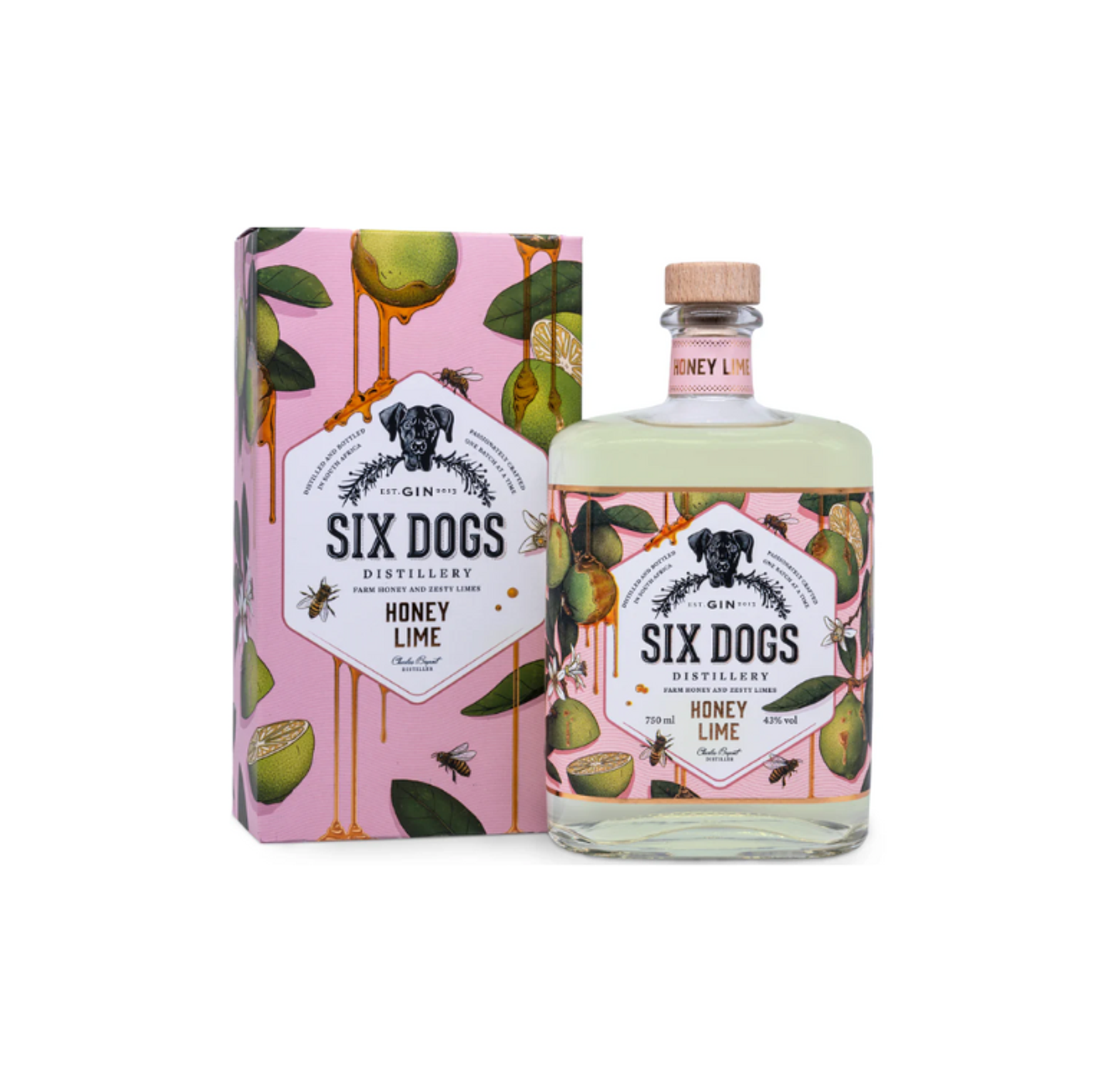 Six Dogs Honey Lime Gin is a premium artisanal spirit crafted by Six Dogs Distillery in the Western Cape, South Africa. Born from a unique sustainability project, the distillery collaborated with Bee Smiths, a bee conservation company, to relocate rescued bees to their farm situated at the intersection of the Fynbos and Karoo biomes. The bees thrived in this environment, producing honey that was then incorporated into the gin, resulting in a harmonious blend of farm-grown limes and locally sourced honey. This innovative approach combines traditional gin botanicals with the distinct flavors of the region, creating a truly unique spirit.