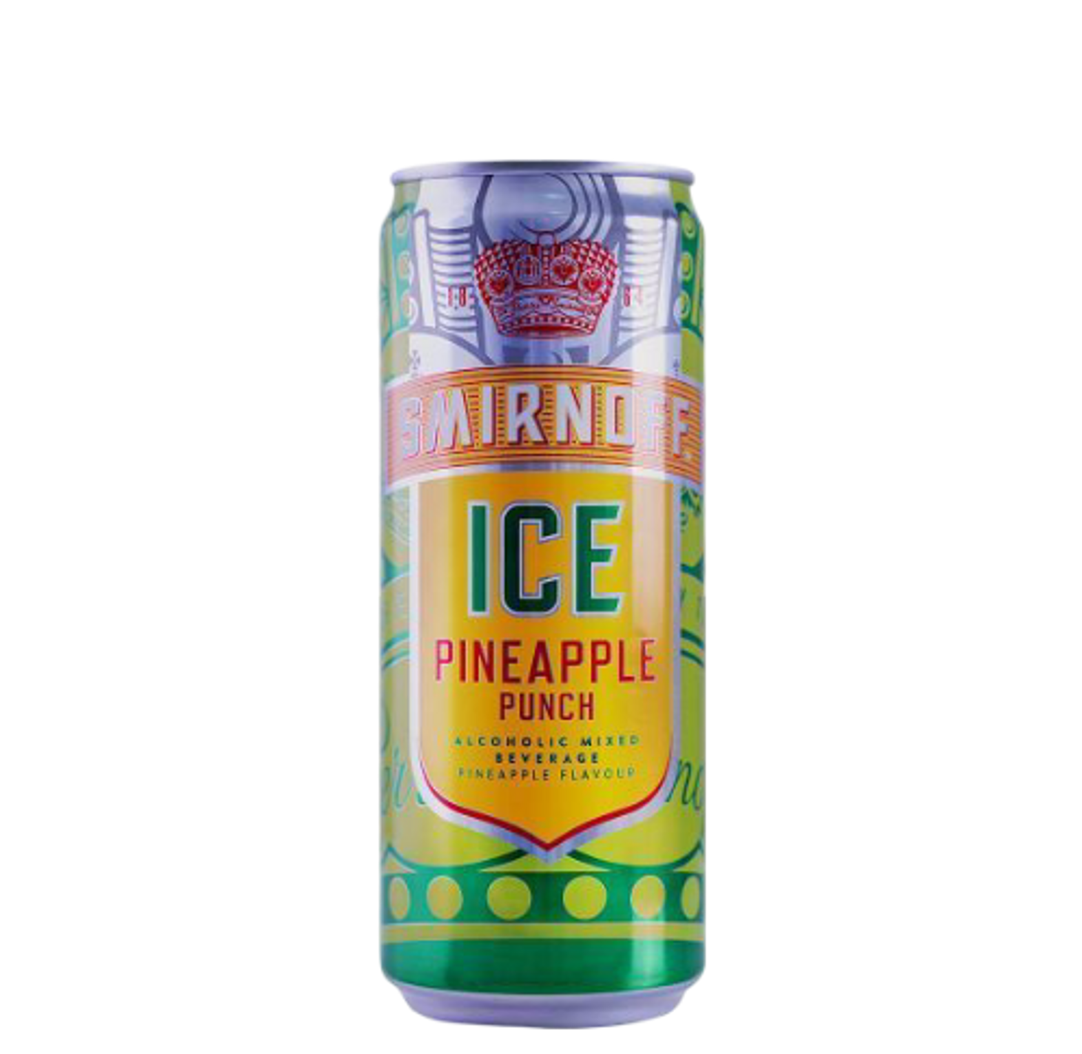 A vibrant, tropical ready-to-drink beverage blending Smirnoff vodka with pineapple and ginger beer flavors, offering a crisp and fruity refreshment.