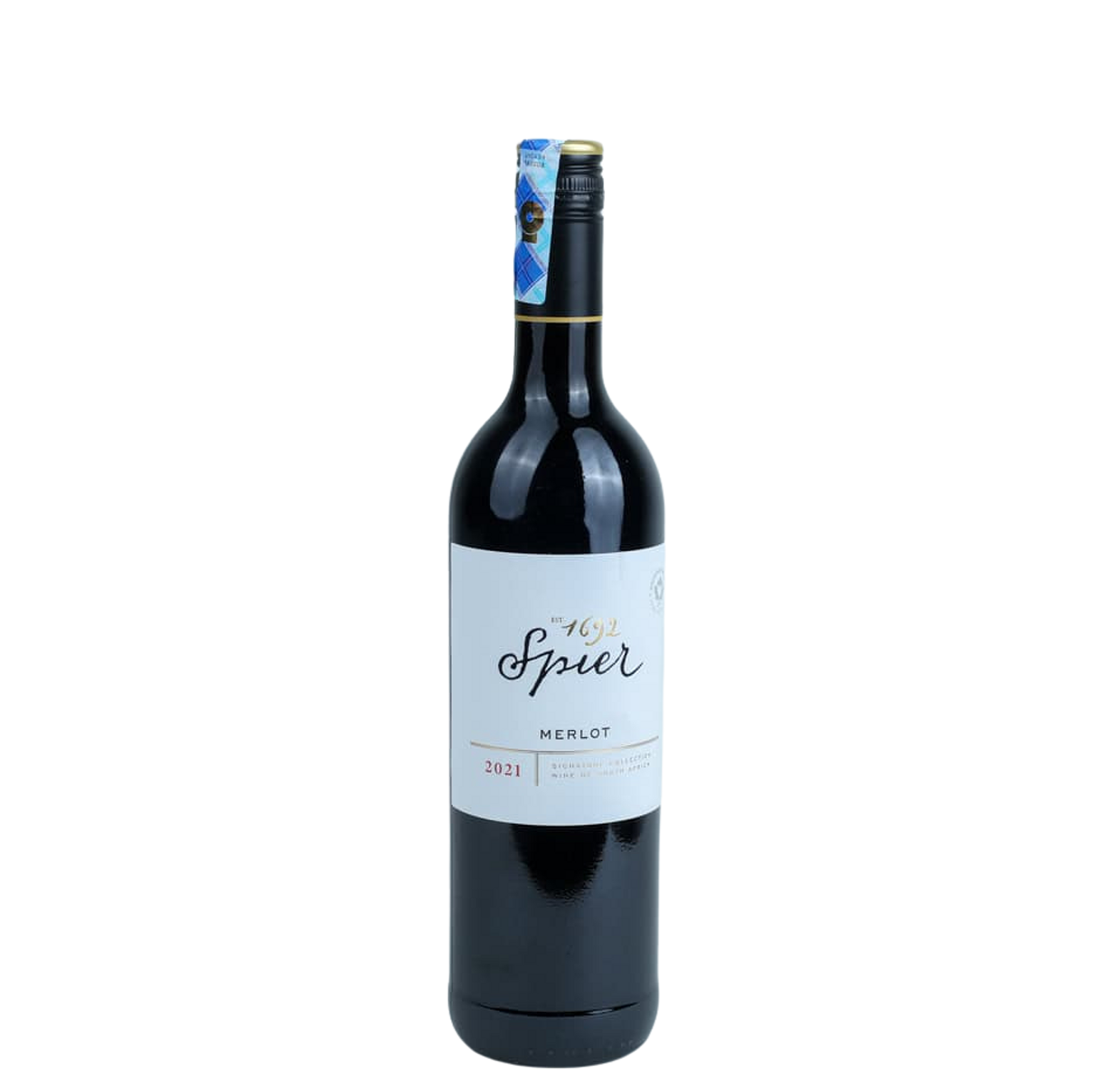 Spier Signature Merlot is a South African red wine (100% Merlot) from the Western Cape. The grapes are grown on mature vineyards, vinified partly in French oak (about 20%) and partly in stainless steel with French oak staves, to balance oak influence with fresh fruit character. Medium-bodied and approachable, it’s intended for versatile pairing and everyday enjoyment.
