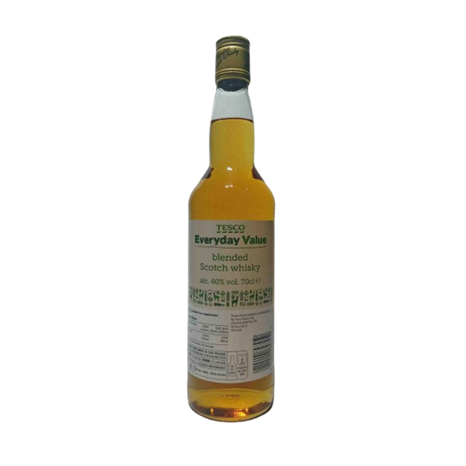 Tesco Blended Everyday is a value-oriented blended Scotch whisky marketed under Tesco’s private label. It is made from a combination of malt and grain whiskies, blended to emphasize approachability rather than complexity. Rated modestly by whisky aficionados, it aims to serve as a baseline Scotch suitable for mixing or casual sipping.