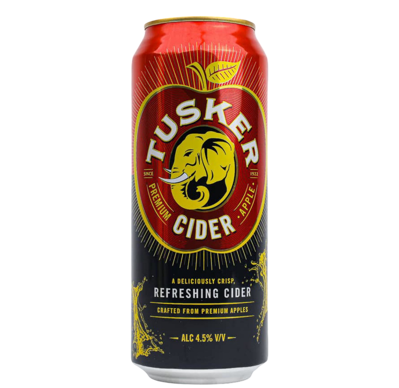 Tusker Cider is a refreshing apple-based alcoholic beverage with a crisp, fruity flavor, offering a light and vibrant alternative to beer.