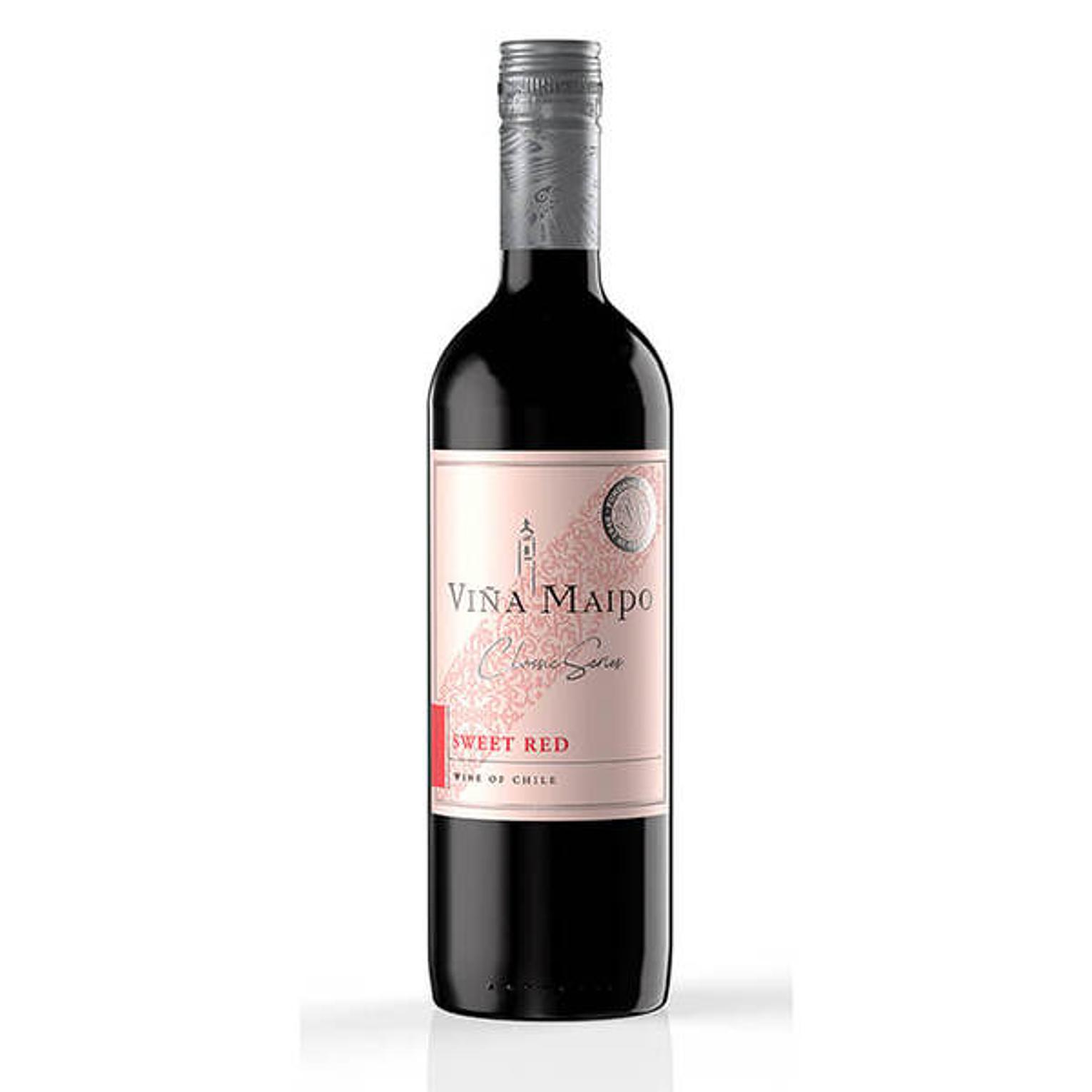Viña Maipo Sweet Red is part of the “Sweet Series” from Viña Maipo (Chile), made as a young, bright, and fruity wine. It contains a blend of Chilean grape varieties—commonly including Pais, Cabernet Sauvignon, Syrah, Carmenere, and Merlot. The wine is intended to be fresh and approachable, with soft sweetness balanced by enough acidity to keep it from cloying. No significant oak-ageing is involved; the style emphasizes fruit and sweetness.